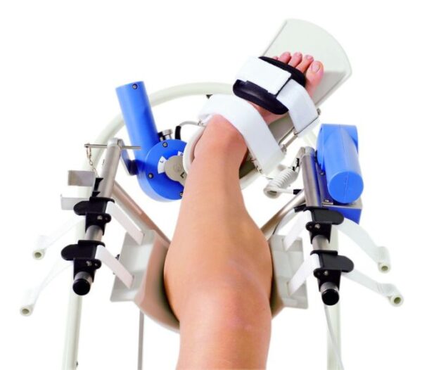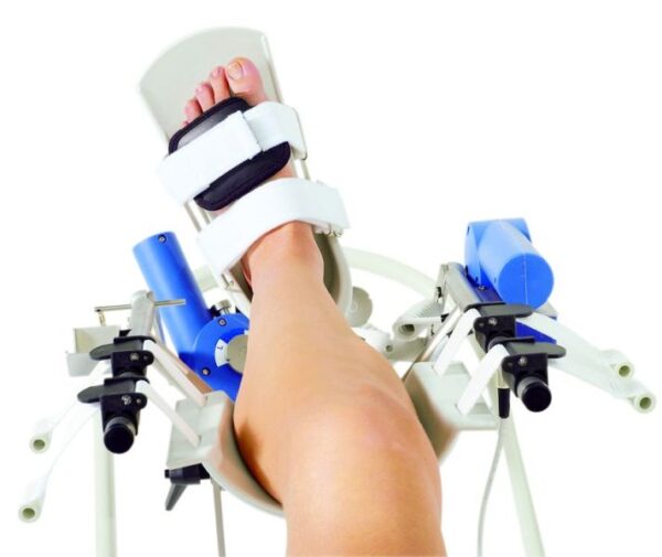 Zařízení provádí anatomicky přesné pohyby – ohyb (dorzální/plantární flexe) a otáčení (inverze/everze) v souladu s principy PNF. Je možné jej snadno přizpůsobit velikosti nohy i poloze pacienta – vleže i vsedě, pro pravou i levou končetinu.