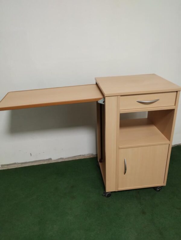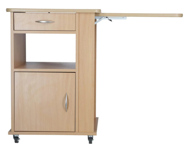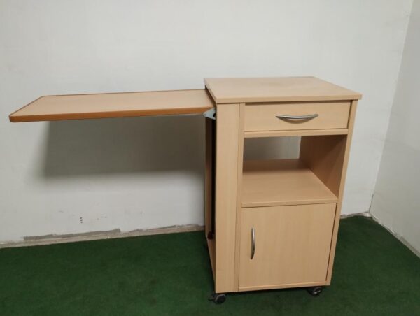 Repasovaný noční stolek je praktické řešení k lůžku pro domácí i zdravotnické využití. Nabízí úložný prostor, výklopnou jídelní desku a snadnou manipulaci díky kolečkům s brzdou.