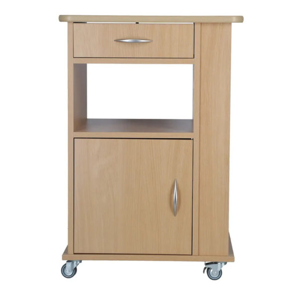 Stolek je vybaven čtyřmi kolečky, z nichž dvě mají brzdu, což umožňuje snadné přemístění i bezpečné zajištění na místě. Díky kompaktní a stabilní konstrukci nabízí spolehlivé používání a dlouhou životnost.