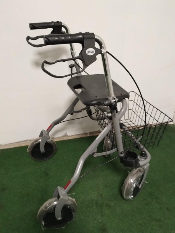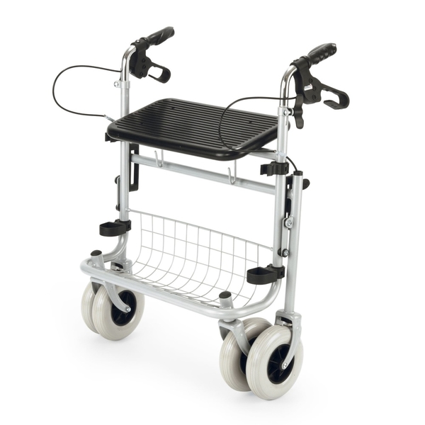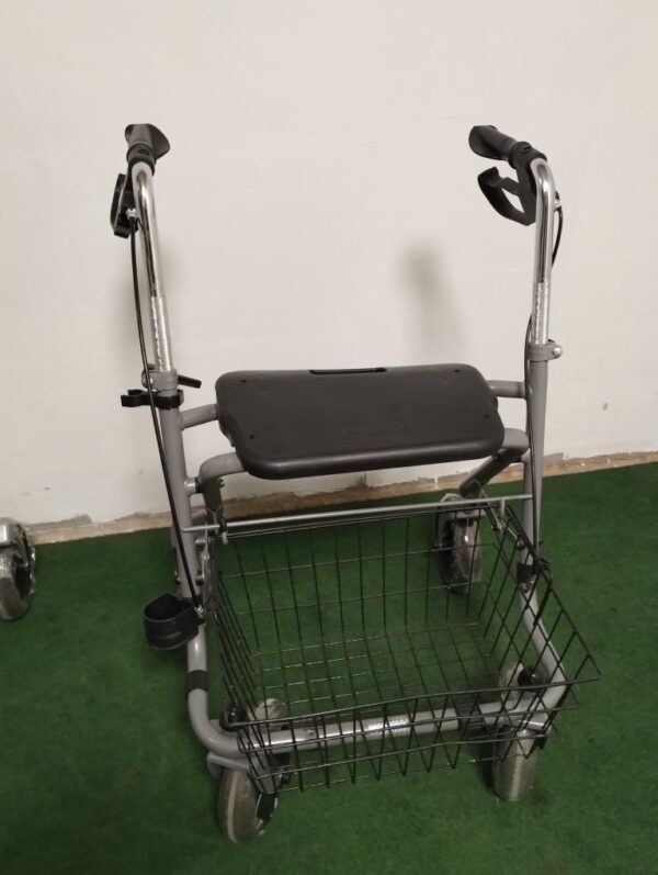 Chodítko je vybaveno praktickým košíkem, který umožňuje převážet nákupy nebo osobní věci bez nutnosti další tašky. Součástí je také sedátko, které poskytuje možnost krátkého odpočinku kdykoliv během chůze.