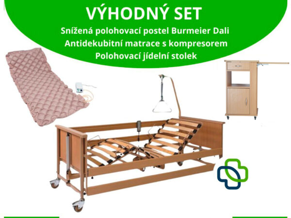 Potřebujete kompletní výbavu? Využijte výhodného setu a získejte elektrickou polohovací postel BURMEIER DALI ARMINIA, antidekubitní matraci SYSTAM s potahem a dřevěný polohovatelný stolek za výhodnou cenu!